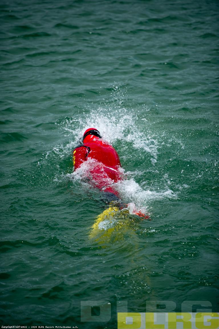 Gemeldeter Surfer in hilfloser Lage auf dem Rhein flußabwärts treibend.